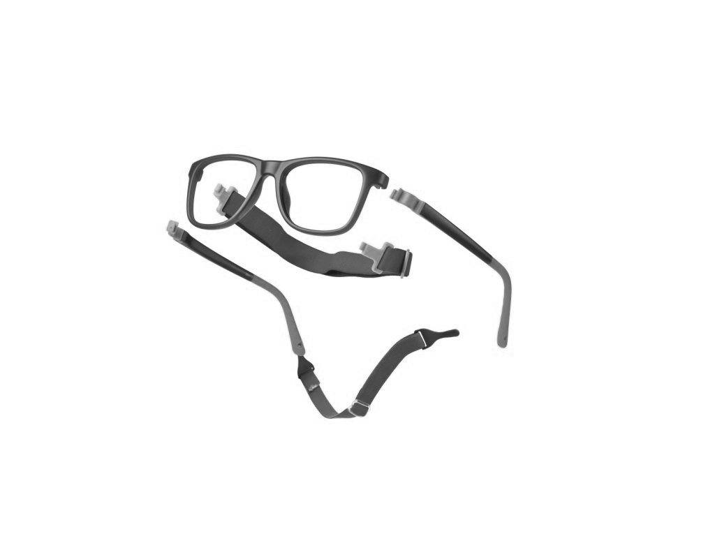 Jedno z nejlepších provedení dětských brýlí. Brýle jsou vyrobeny z extra pružného plastového materiálu. Brýle mají skvěle řešené ohýbání v kloubu (přechod mezi brýlemi a stranicemi), jsou navrženy pro maximální zatížení. Kloub je nahrazen tvarovaným gumovým profilem, což snižuje možnost zlomení brýlí v ohybu na minimum. Koncovky stranic jsou vyztuženy kovem a povrchově pogumovány, ve výsledku je možné brýle jednoduše tvarovat za uši a díky pogumování lépe brýle drží na hlavě. Stranice je možné jednoduše vyměnit za pásek, který perfektně stáhne brýle na hlavě. Druhou možností je uchycení pásku na konce stranic a zvýšit tak usazení brýlí na hlavě.