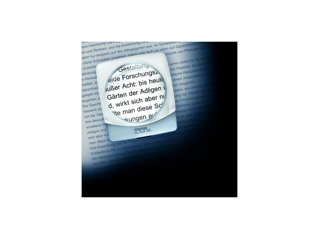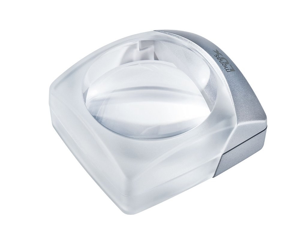 Stojánková lupa s osvětlením a s pevným zvětšením. Výška 45 mm. Ultra plochý design s velkým zorným polem. Velká, proměnlivá vzdálenost použití (oko-čočka). Díky integrovanému světlu je ideální i pro použití při velmi špatných světelných podmínkách. Konstantní jas osvětlení po celou dobu životnosti baterie.