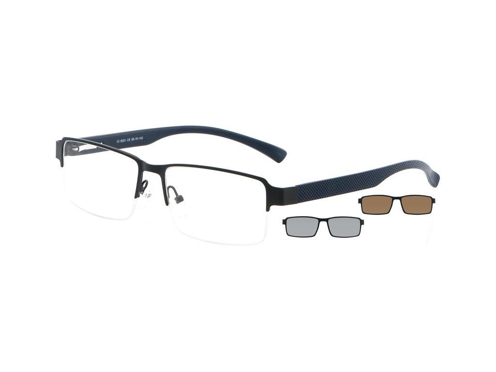 Kovové dioptrické brýle s odjímatelným extra lehkým klipem z materiálu ULTEM. Brýle jsou v základním provedení osazeny slunečním předvěsem s polarizačním filtrem. Předvěs drží pevně na brýlích díky magnetu umístěnému přímo v rámu brýlí a zároveň se dá snadno nasadit i sejmout. Tento typ brýlí doporučujeme pro řidiče a pro zákazníky, kteří často mění světelné podmínky (přechod interiér/exteriér).