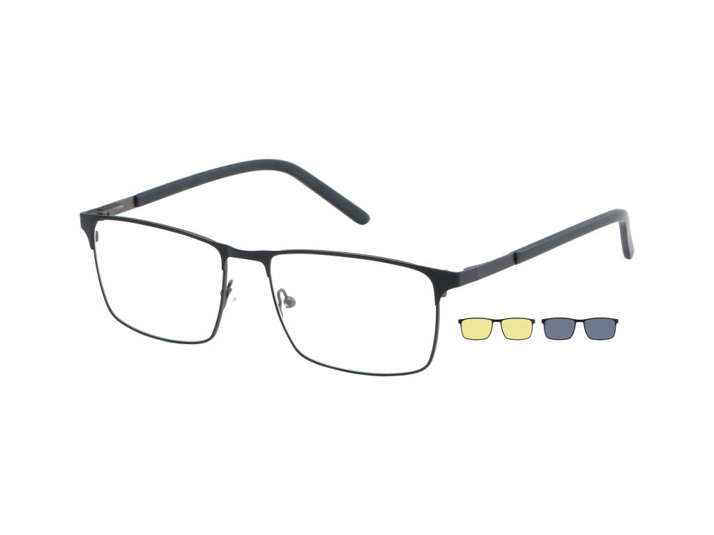Kovové dioptrické brýle s odjímatelným extra lehkým klipem z materiálu ULTEM. Brýle jsou v základním provedení osazeny slunečním předvěsem s polarizačním filtrem. Předvěs drží pevně na brýlích díky magnetu umístěnému přímo v rámu brýlí a zároveň se dá snadno nasadit i sejmout. Tento typ brýlí doporučujeme pro řidiče a pro zákazníky, kteří často mění světelné podmínky (přechod interiér/exteriér).