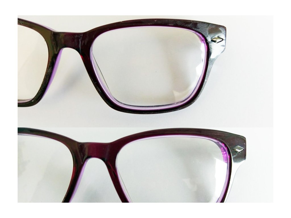 Tento typ opravy lze aplikovat plastové brýle na bázi acetátu, které nejsou povrchově barvené.